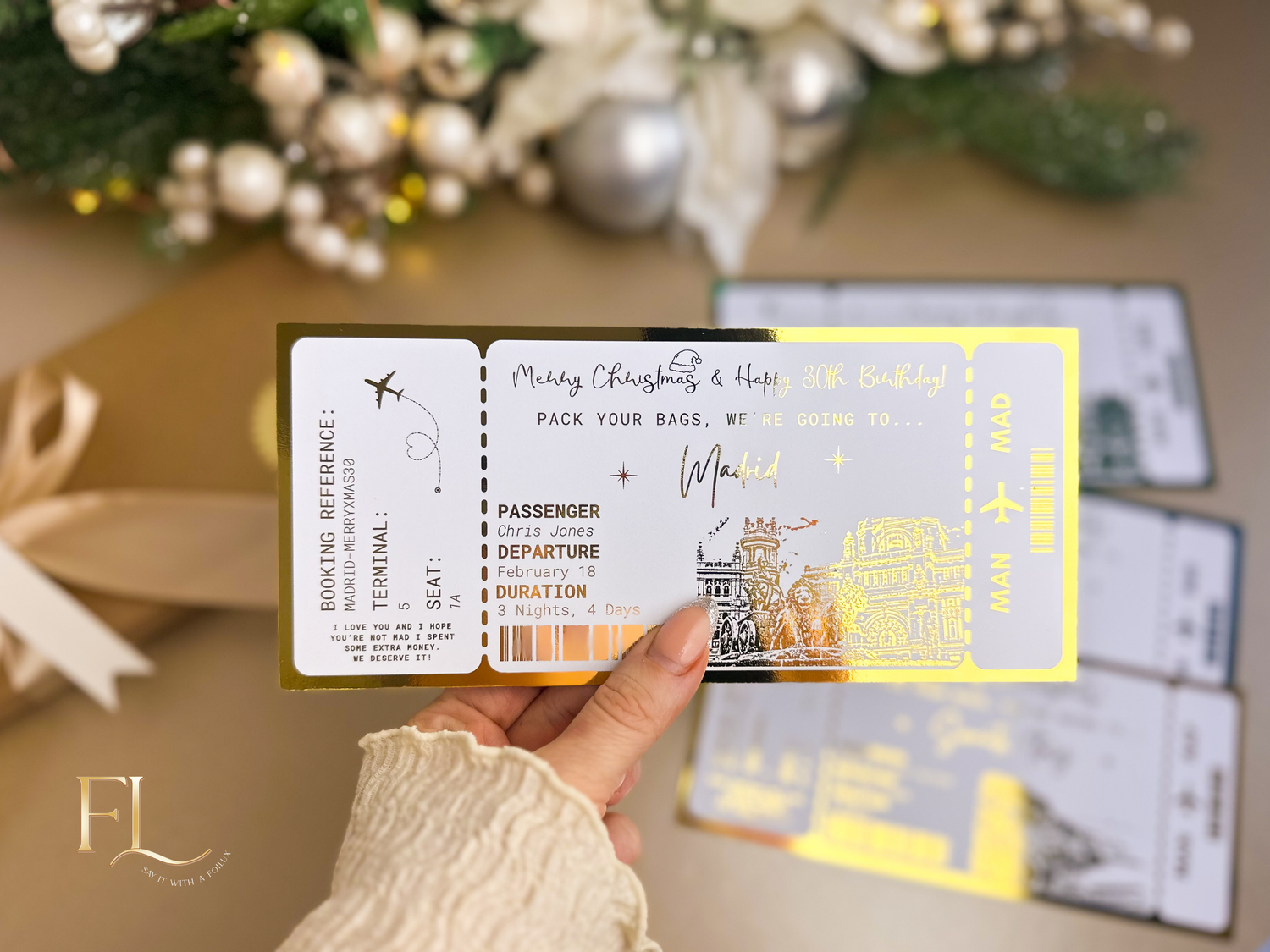 Make your Christmas gift truly magical with our Festive Foiled Boarding Pass, the perfect way to announce a special trip away this holiday season! 🎁✈️