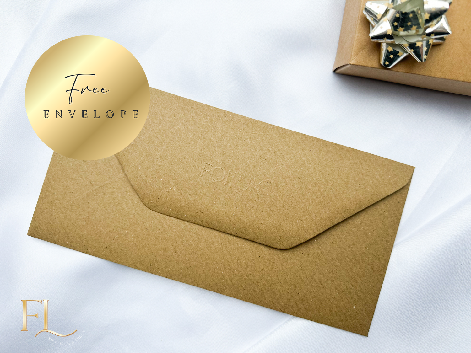 Choose between a complimentary kraft brown envelope, or upgrade to a luxury foiled gift box with ribbon.
